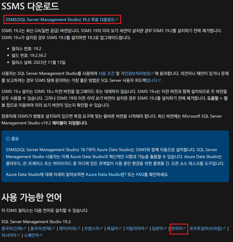 SSMS(SQL Server Management Studio) 다운로드 - SQL Server Management Studio (SSMS)
