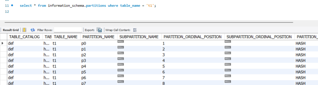 FROM INFORMATION_SCHEMA.PARTITIONS