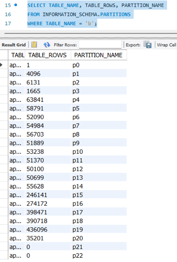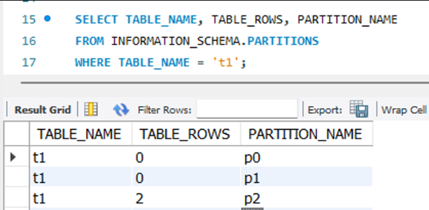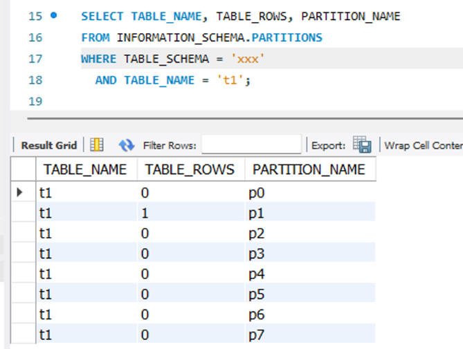 SELECT TABLE_NAME, TABLE_ROWS, PARTITION_NAME