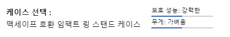 임팩트 케이스에 링스탠드가 장착되어 가로로 동영상을 시청시 편의성을 더한 제품입니다. 가격은 94,000원 정도입니다.