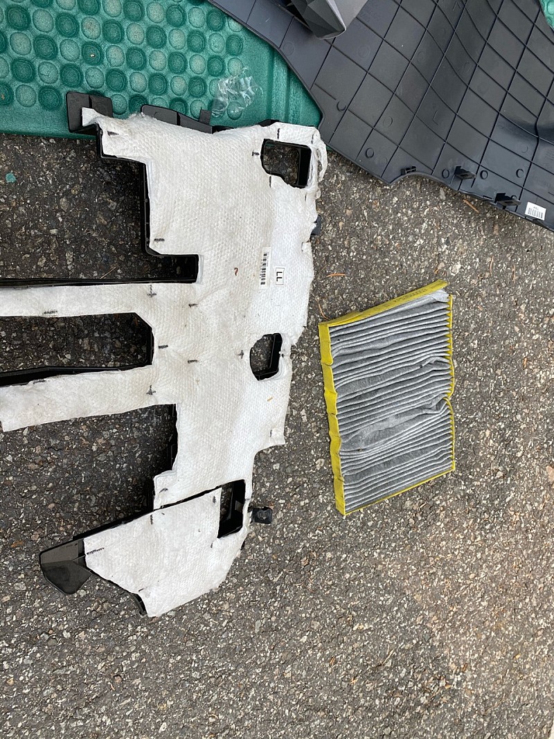 - 커버를 들어내면 하얀 에어컨 필터가 보입니다. 손을 요령껏 안쪽에 집어넣어서 에어컨 필터를 바깥쪽으로 끄집어냅니다.