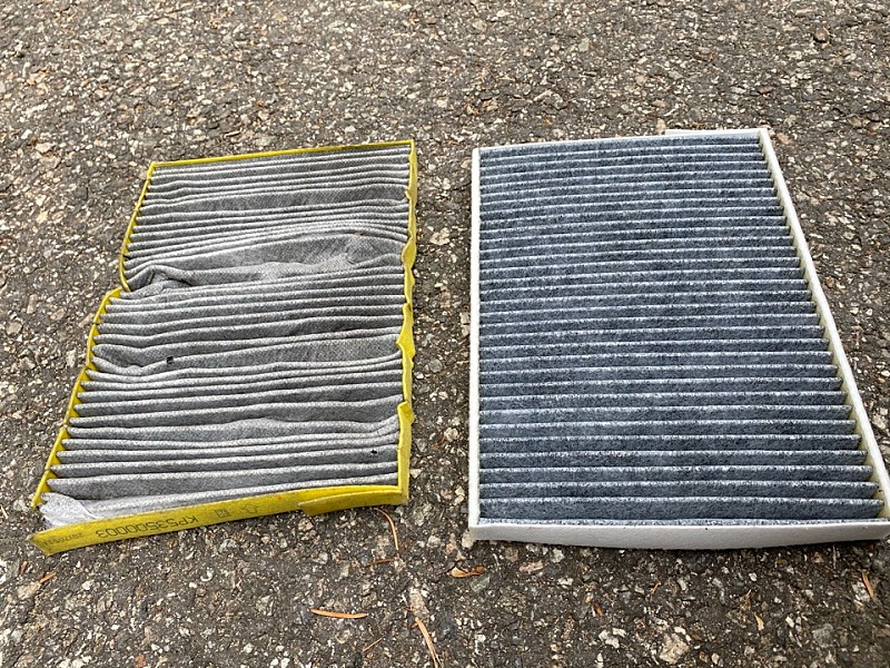 - 새 필터를 교체하면 끝입니다. 필터를 끼울 때는 하우징 구멍 크기가 협소하기 때문에 손으로 밀어넣는다고 잘 들어가지 않습니다. 필터의 양쪽 바깥 부분을 손으로 눌러주면서 하우징 안쪽으로 필터를 힘껏 밀어넣어줍니다.