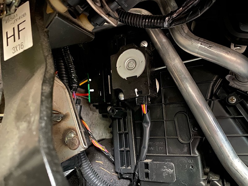 실내 에어컨 필터는 운전석 브레이크와 가속 페달의 우측 방향 하단에 위치해 있습니다. 아래 사진에서 화살표로 표시된 방향입니다: