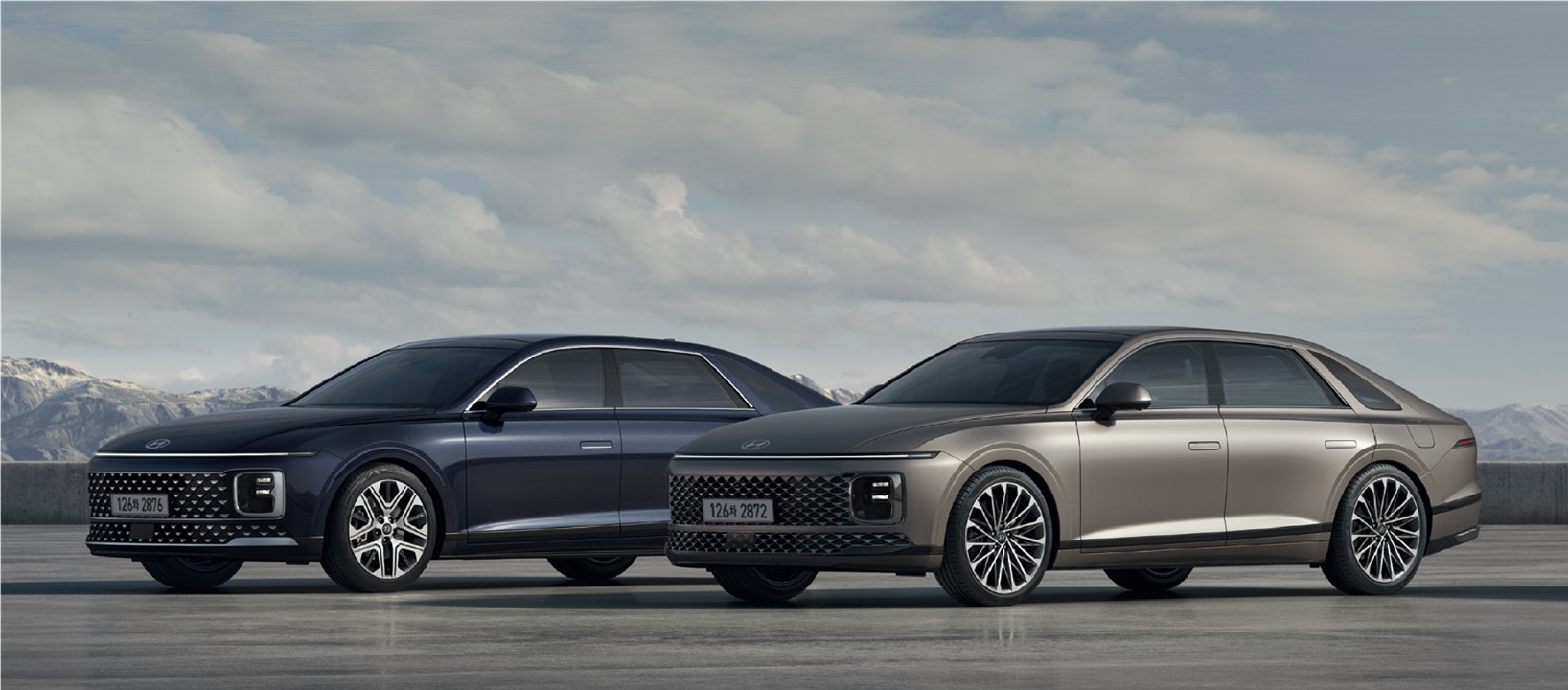 아름다운 비례 위에 매끈하게 다듬어진 면과 미래지향적인 수평형 램프 디자인을 더해 플래그십 세단의 고급스러움과 존재감을 완성하였습니다.