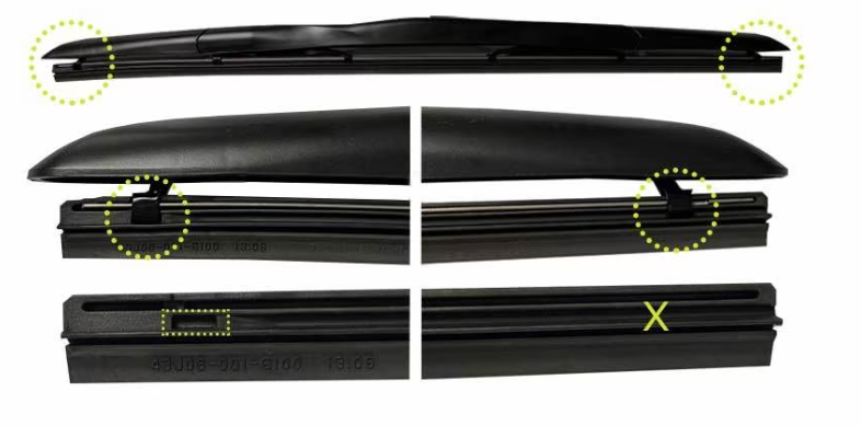 1. 와이퍼 끝을 확인 후 고무에 홈이 파인 쪽을 찾습니다.